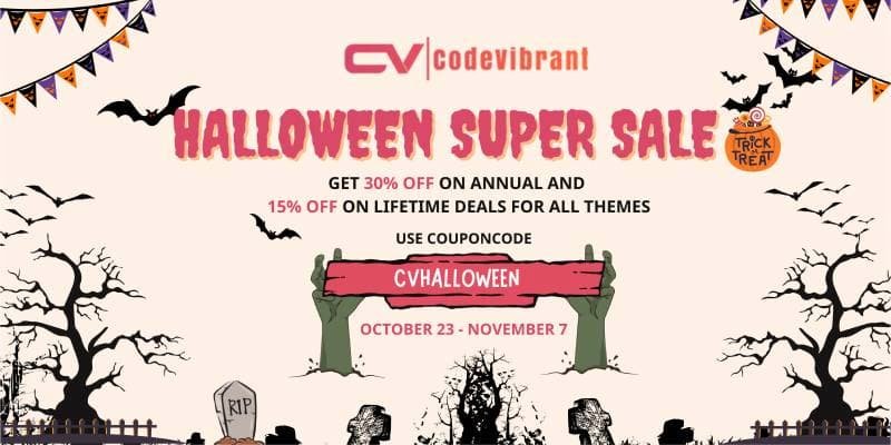 Code Vibrant is offering 30% off in Annual deals and 15% off in the lifetime deals for all of their WordPress theme for this years Halloween. The deal starts from October 23, 2025 and lasts until November 7, so make sure to grab it. Don’t forget to use the coupon code ‘CVHALLOWEEN‘ to get the deal.